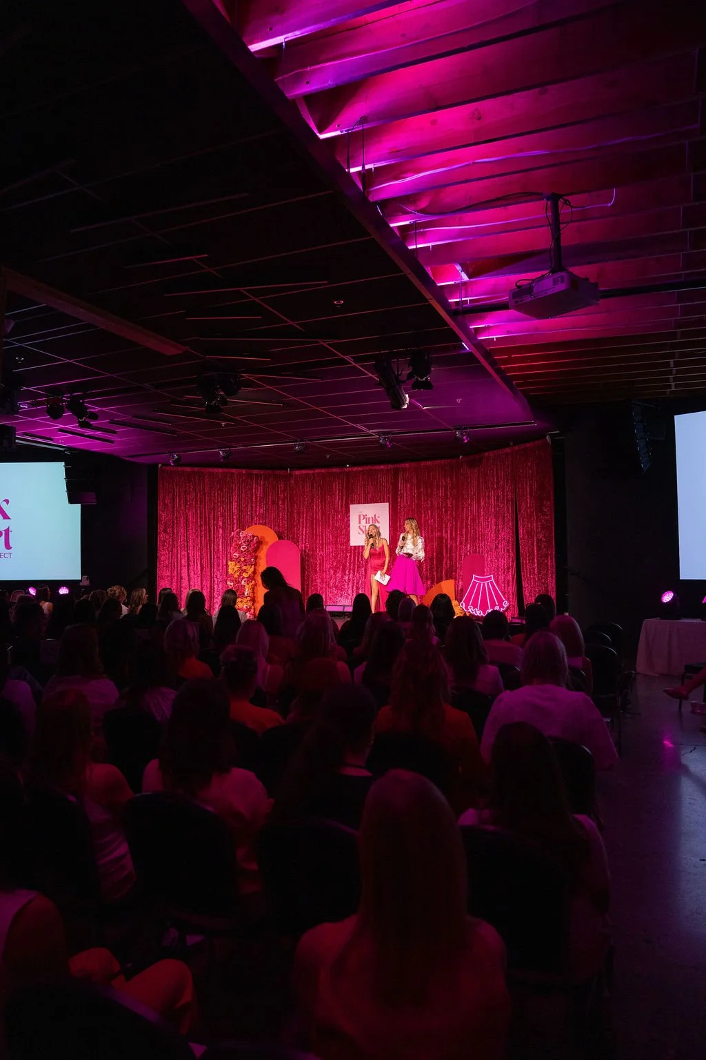 Business mentor Anita Guerin leading a live workshop for female founders in Kelowna, sharing tools for confident leadership and business growth – Pink Skirt Society community event.